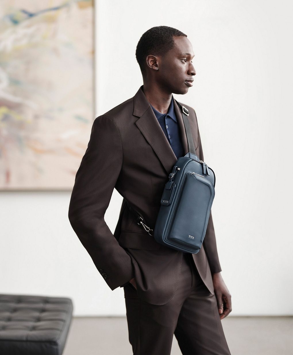 A refined take on the sling, this compact style has ample pockets to help you easily organize and access essentials. Embossed leather accents frame the sleek silhouette while elevated finishes complete it.